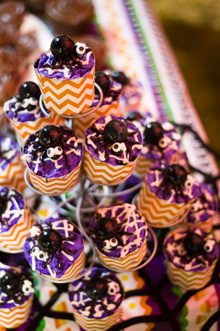 I’ve been on a spider kick this Halloween, and these fun colorful cupcakes tied in with the colorful cartoon feeling of our costumes.