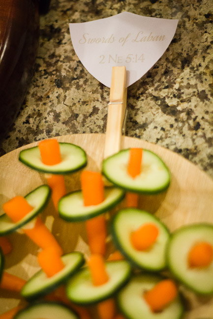 Swords of Laban – 2 Nephi 5:14 (Cucumbers and carrots –the carrots were supposed to be spears, not baby carrots, but I hadn’t told my helpers. Oh well!)