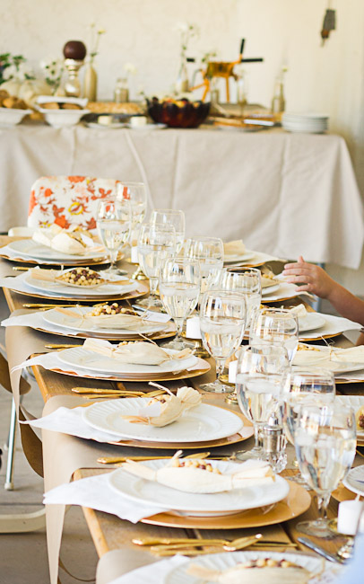 I was really pleased with how our Thanksgiving table came together last year! It was an elegant out-door gathering featuring gold and cornhusks.