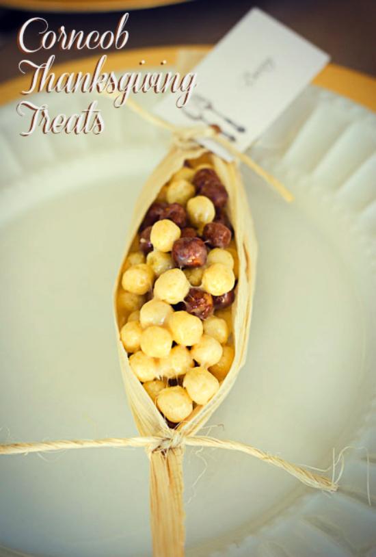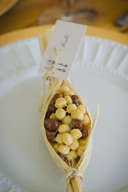 You can read all about it here. But I thought I would explain a little more about the corncob treats I made to serve as both a kid-friendly dessert and a decorative place card that tied in with the other cornhusks in the decor.