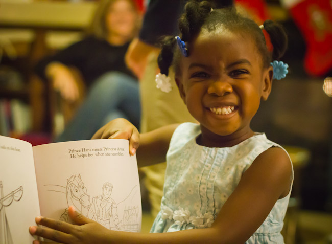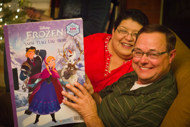 Since this party was at Christmastime and there were so many fun FROZEN goodies I wanted to share, we had a “FROZEN elephant” gift game. I wrapped up enough gifts for each family to have one and then we drew numbers to see which family would choose first. They could open a new gift or steal one from someone else. We had a lot of fun doing this. Most of the kids didn’t want to steal, but I will say, the Olaf toy was probably the favorite.