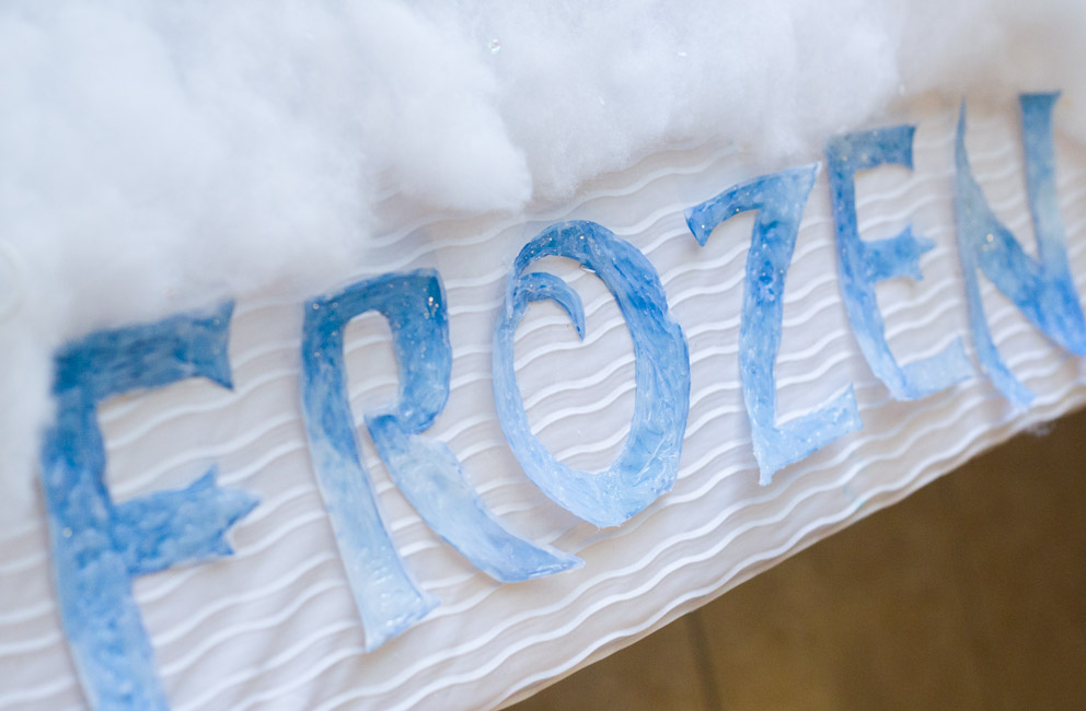 The other DIY I did for the table was to create this frosty-looking version of the letters of the FROZEN logo.