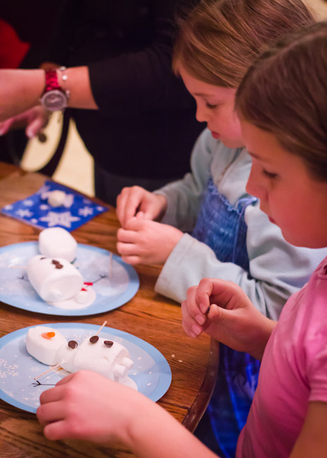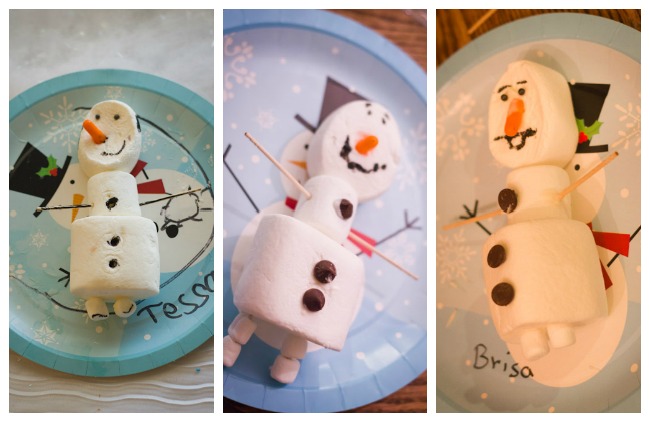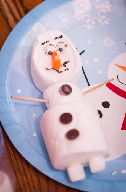 After eating, we made our own marshmallow Olafs.