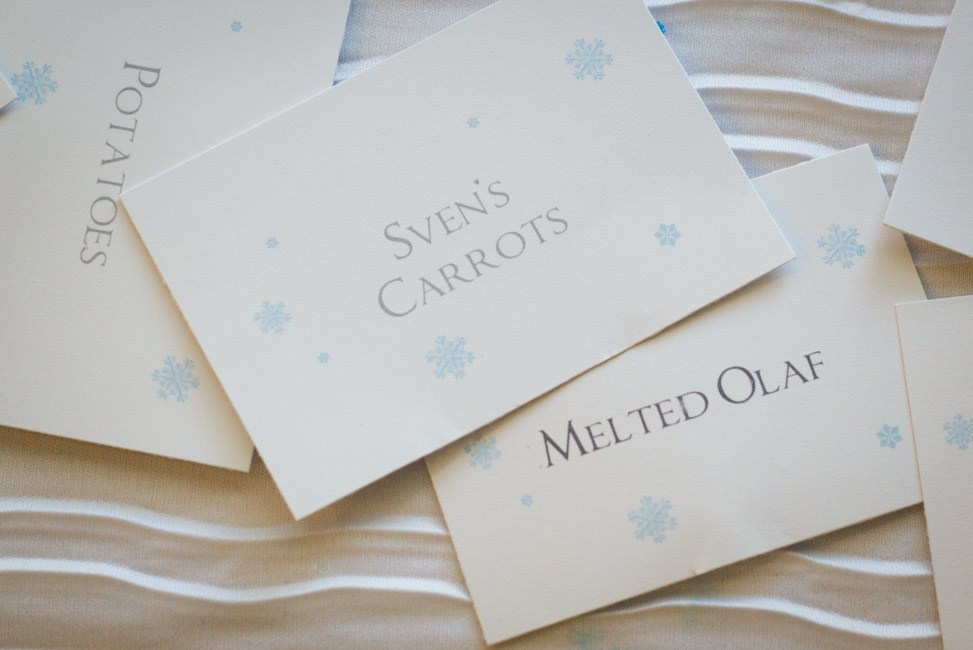 I made snowflake food tags and used the snowflake napkin rings to hold them in place.