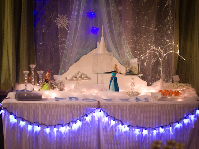 The main focal point of the party was the icy dessert table I designed to try and capture the magic of the winter wonderland Elsa creates in the movie.