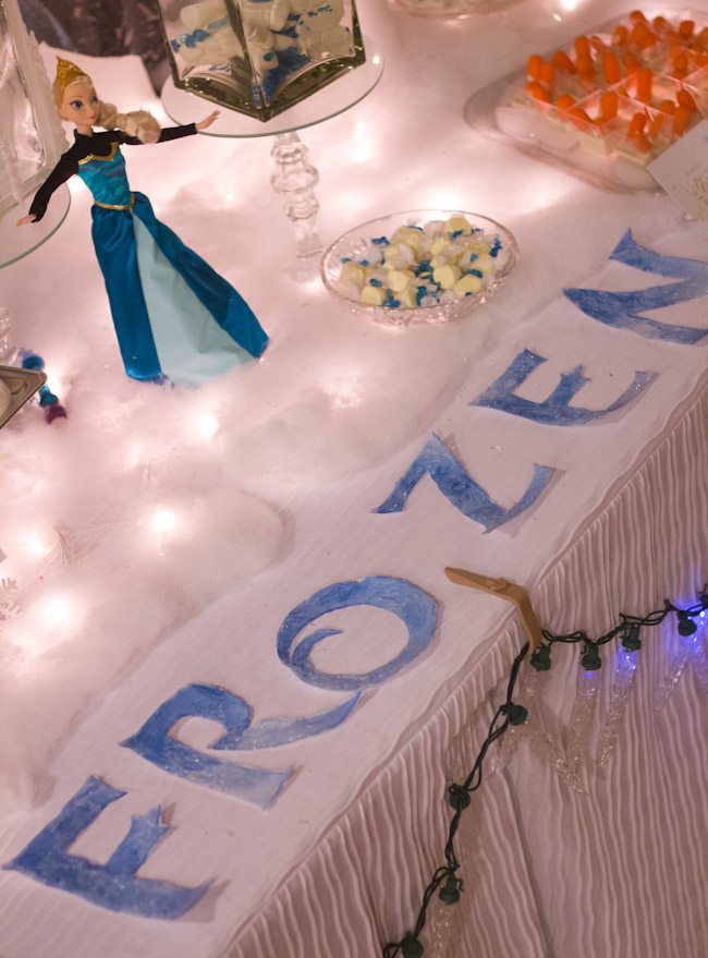 The other DIY I did for the table was to create this frosty-looking version of the letters of the FROZEN logo.