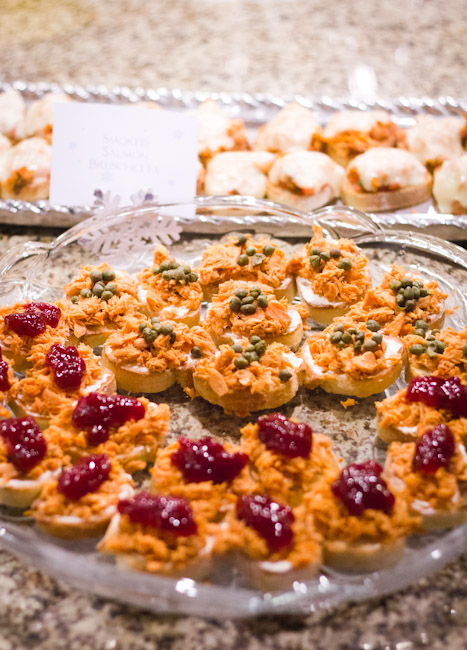We served Swedish meatballs, mini potatoes, gravy and sauce. Fishing is really important in that part of that world so I had BSB whip up some appetizers out of smoked salmon.