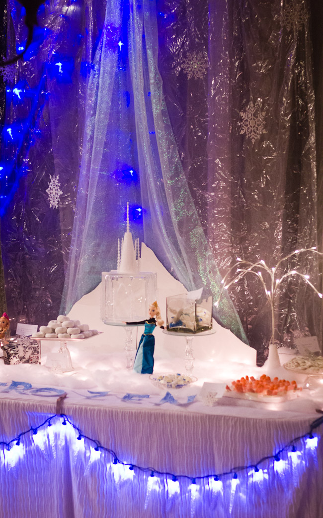 The main focal point of the party was the icy dessert table I designed to try and capture the magic of the winter wonderland Elsa creates in the movie.