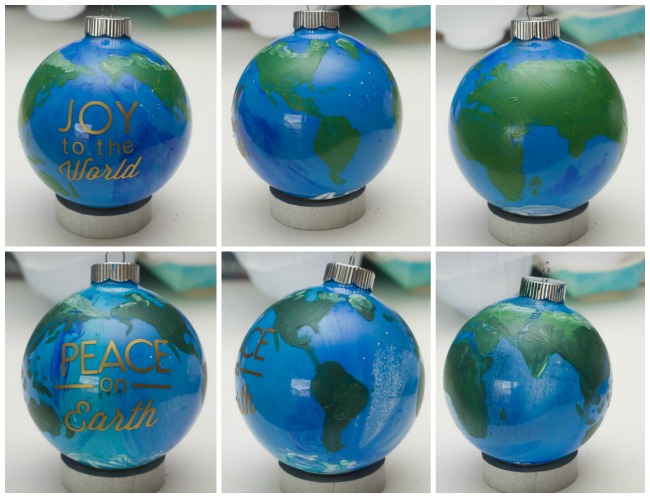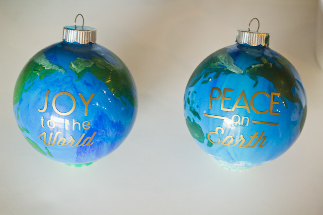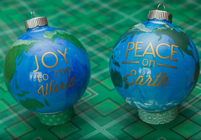 I have been wanting to do a Christmas focused on “Peace on Earth” and “Joy to the World” for a while now and have been collecting ideas on my Pinterest board. These DIY ornaments will look great on our tree this year, and would also make neat gifts for neighbors or teachers.