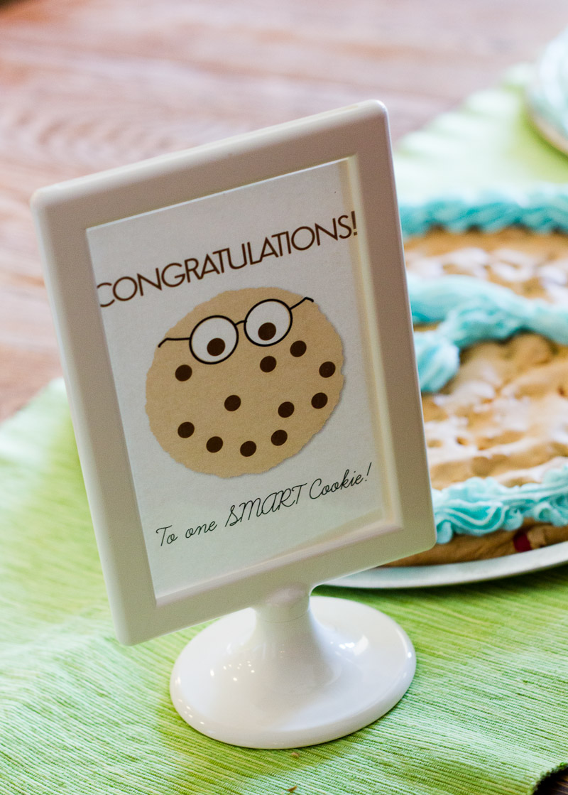 I designed the card to be a little generic so that it could work for other occasions, as well, such as a graduation party, end of the school year, or celebration of an academic award or milestone. I put one inside of a frame to set by the cookies and help them see what the surprise was all about.